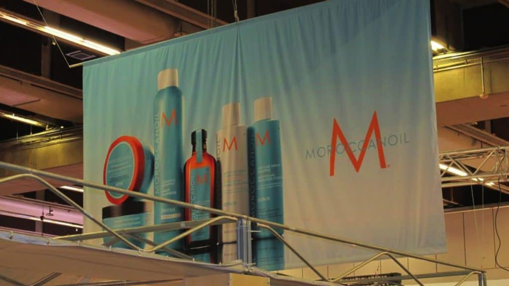 Photos of banner installation with rig installers. The rig is a type of installation that consists of installing banners or other items using steel cables fixed to the ceiling by anchor points. It is this type of installation that is used for stage set-ups. In this case, the installation took place at the Parquet of the Caisse de dépôt et placement du Québec. The only way to install that was allowed was the rig, with flexible poles that held the banners in tension.