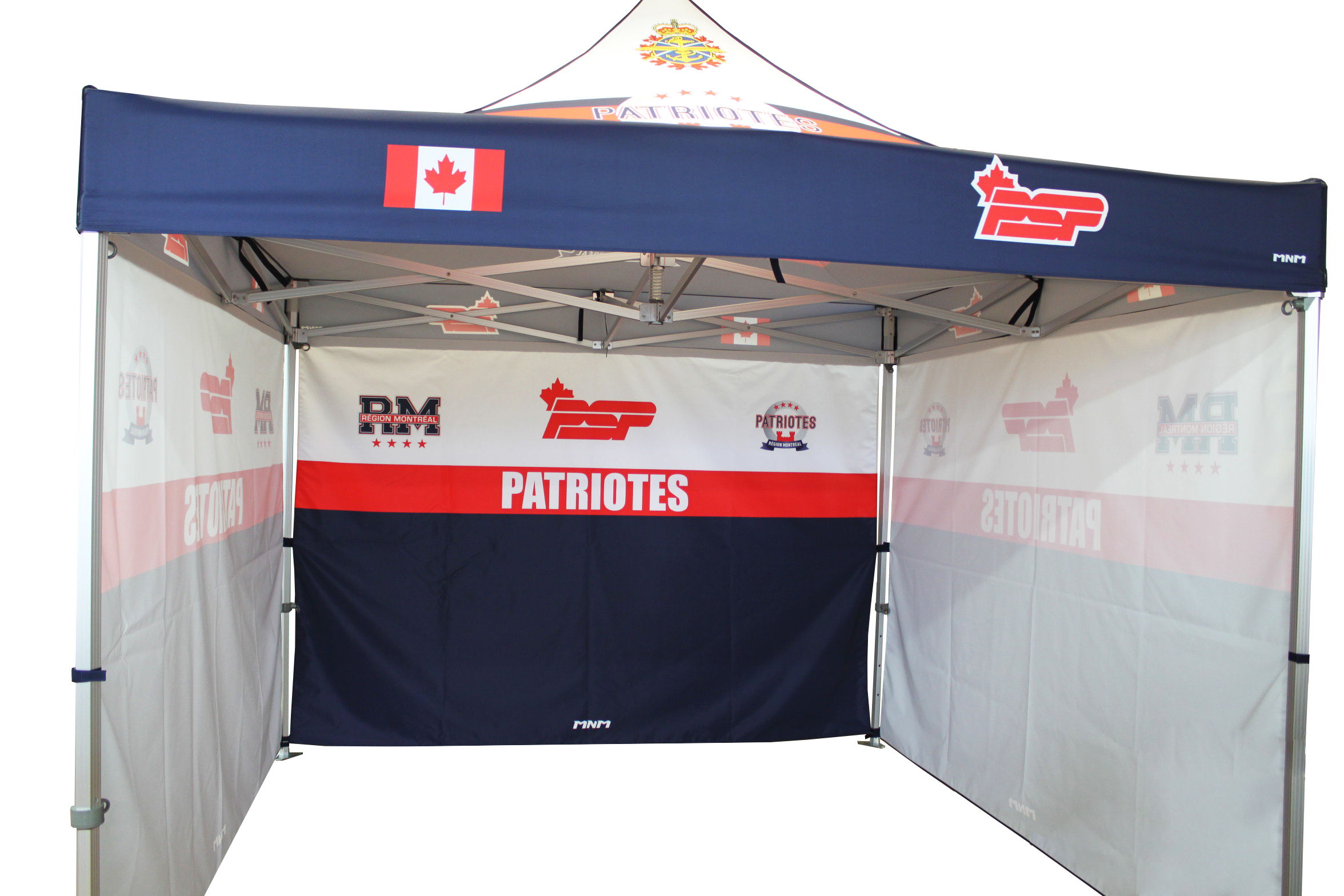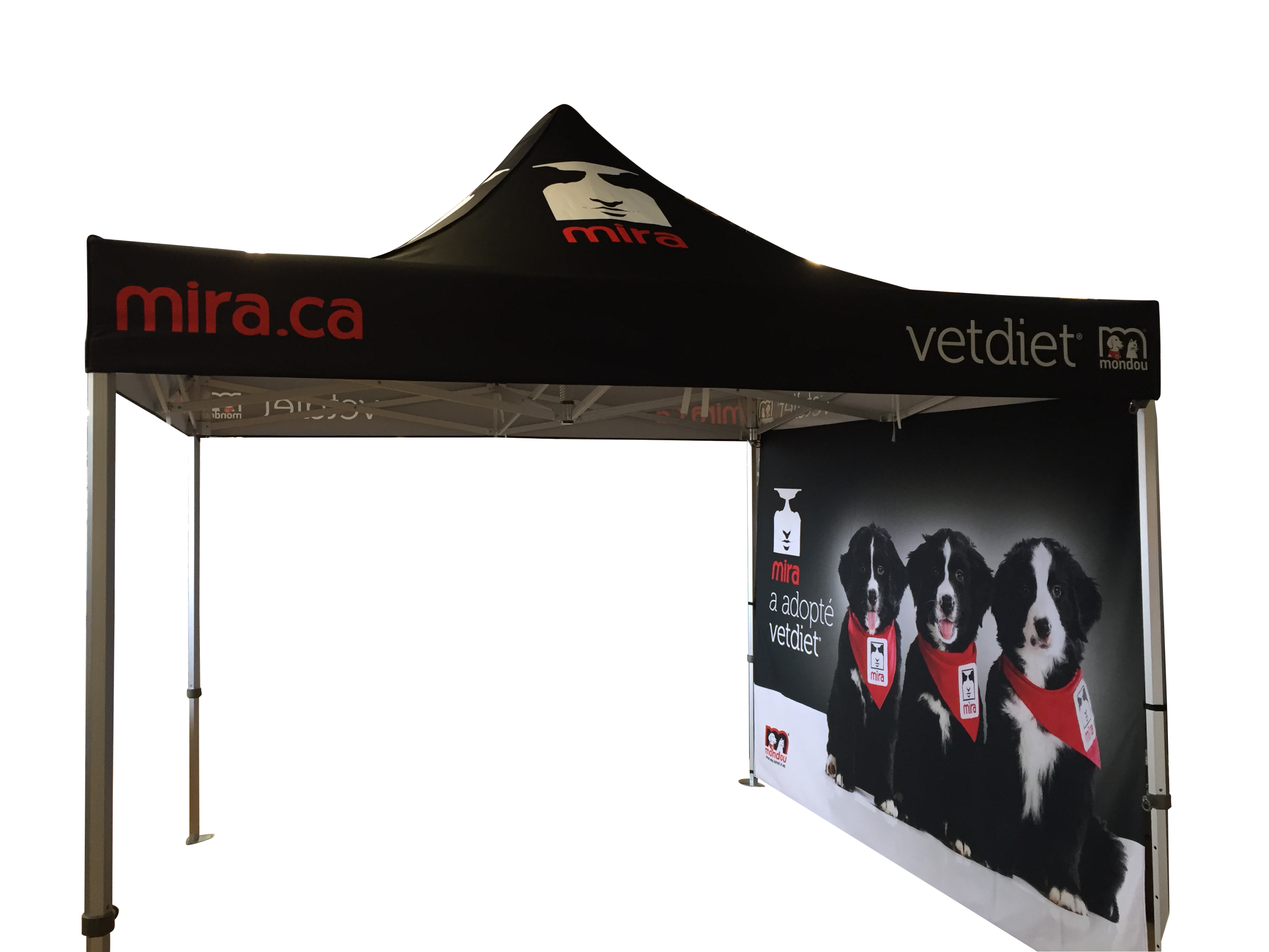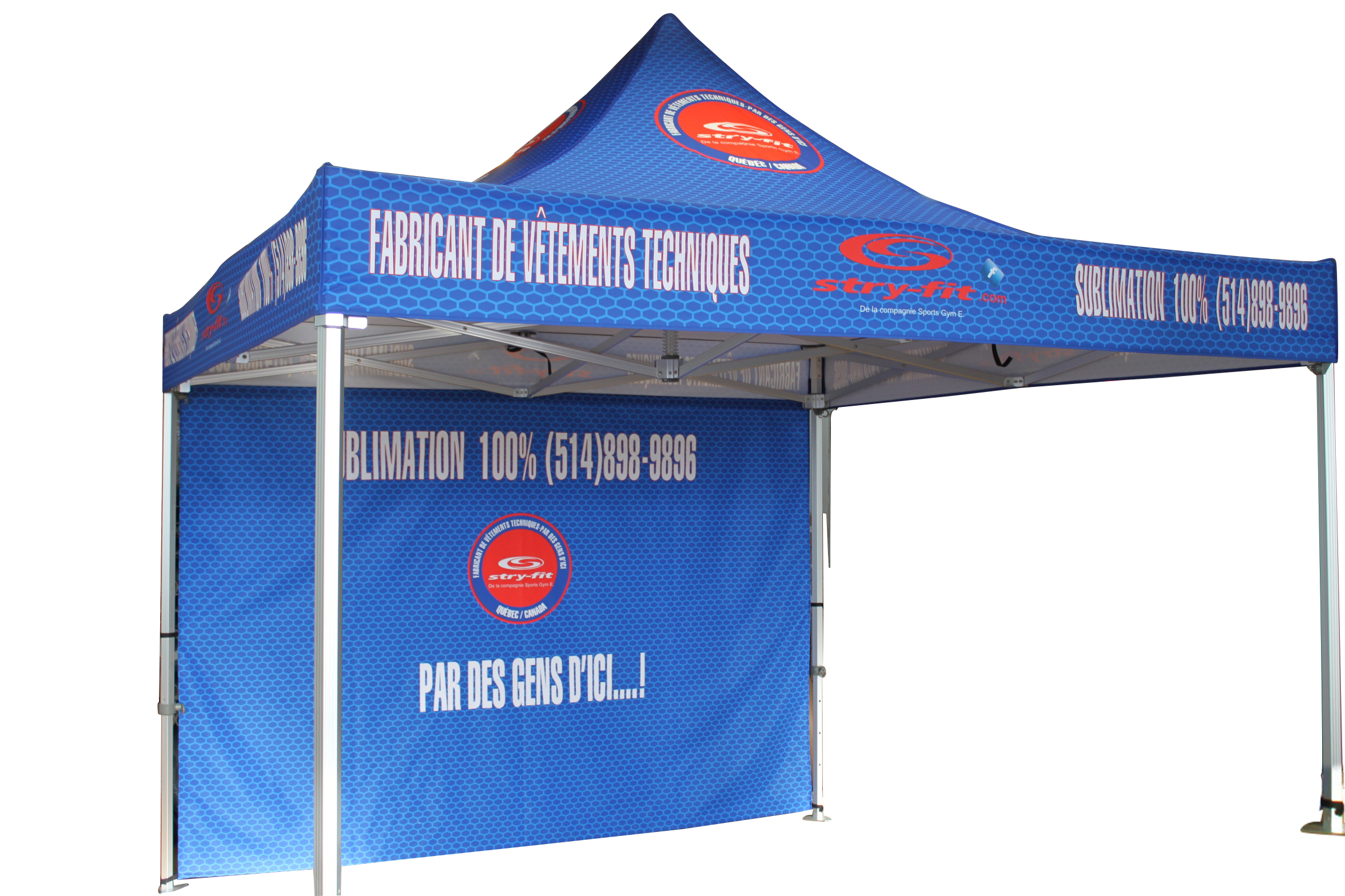 Promotional tool by excellence, the sublimated and personalized tent is both attractive and useful. It catches the eye at first glance and at the same time serves as a shelter, which is very practical with the changing climatic conditions of Quebec.